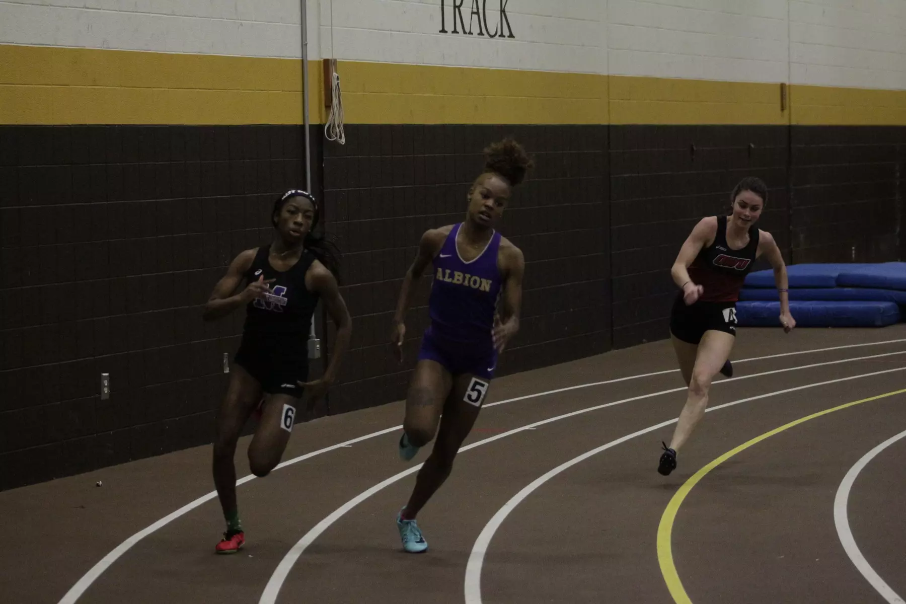 TIFFIN, Ohio - There was no score kept for the Dragon Grand Prix, but there were still many noteworthy performances for the Britons. Facing some of the best Division II and Division III talent, the women Brits were able to place two women in the top 8 finishers of the 60m dash. Alexis McGinley (4th) and Layla Wilks (6th) were the top finishers. Two other sprinters who placed well were Chalara Sutton and Cianna Brown. Sutton finished 6th in the 400m dash. Her time of 1:03.61 was a personal best and put her #9 on the Albion College all-time list. Brown was the only event winner for the Britons with a winning jump of 10.60m (34' 9.5") in the triple jump. This jumps ranks as #4 all-time in Albion College women's Track & Field history. Brown also ran a personal best time (8.25) in the 60m dash. This also earned her a top 10 ranking (#7) on the Albion College all-time list.