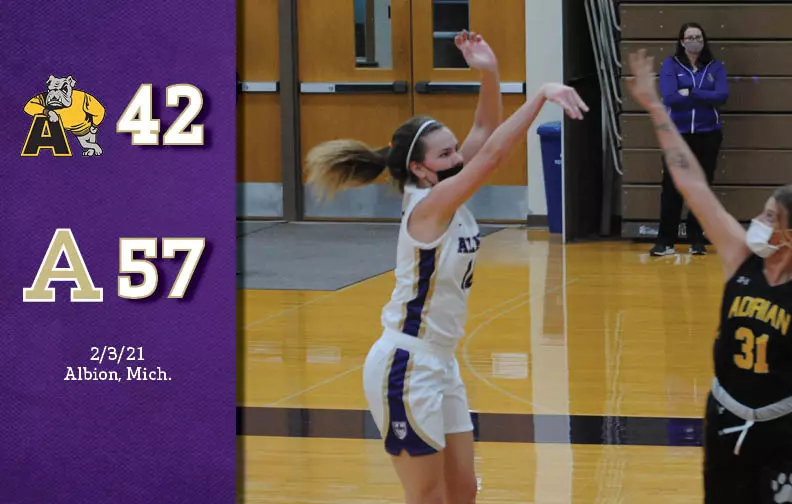 Box Score ALBION, Mich. -- A double-double by Amanda Larson lifted the Albion College women's basketball team to its second straight win, defeating Adrian College, 57-42. The junior scored 12 points and brought down 12 boards. All 12 points came off a perfect 4 of 4 performance from beyond the arc.